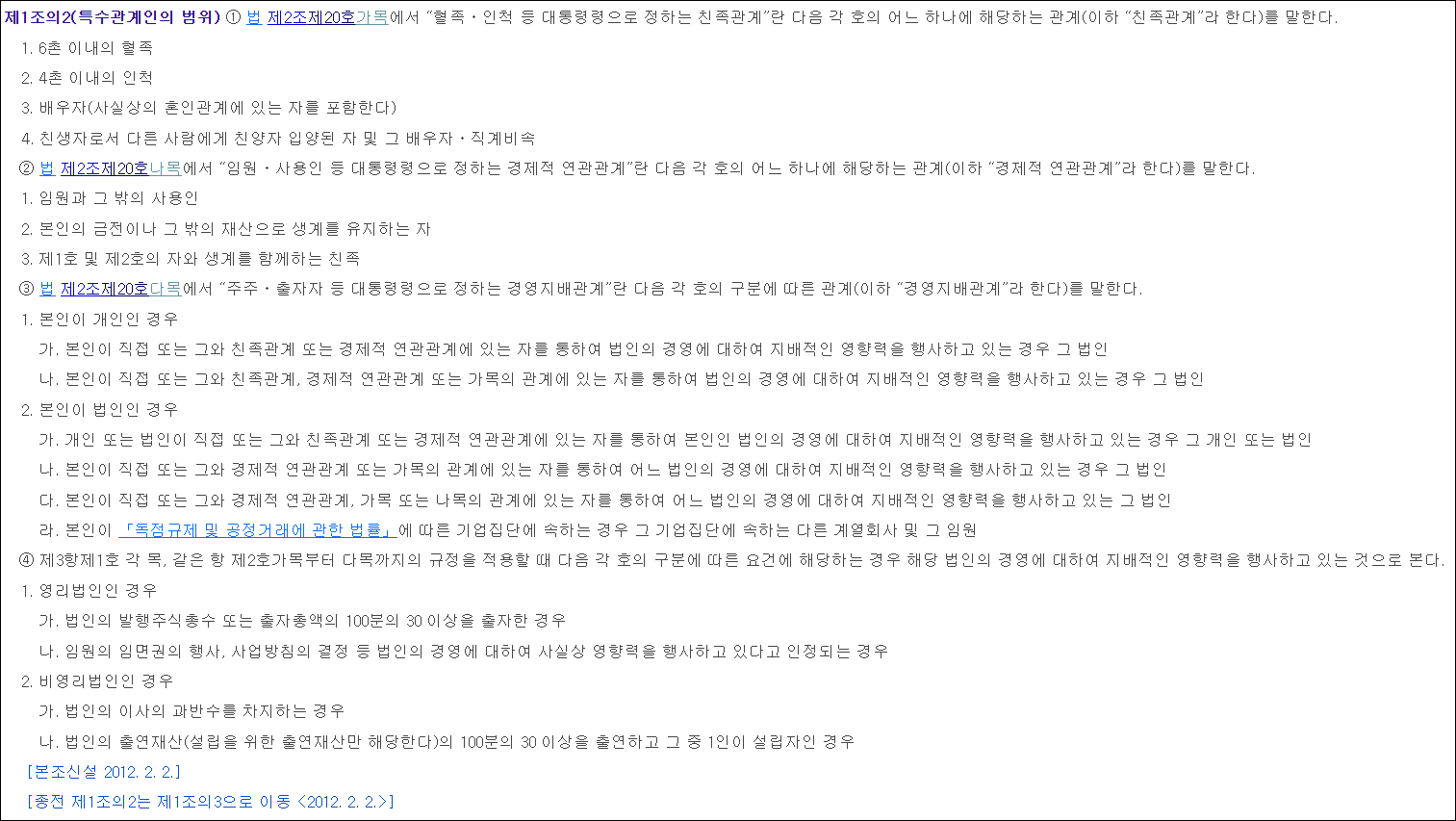 ⑤ 제1항에 따른 특수관계인의 범위와 그 밖에 부당행위계산에 필요한 사항은 대통령령으로 정한다. <개정 2012.1.1>