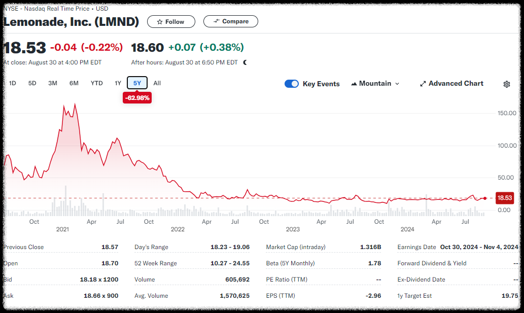 레모네이드는 AI 기술을 활용해 보험 가입 절차를 간소화하고, 청구 처리를 빠르게 하는 혁신을 이루고 있습니다. 이로 인해 저비용 구조로 고객을 끌어들이고, 새로운 보험 시장을 개척하고 있어요. - 향후 주가 전망
