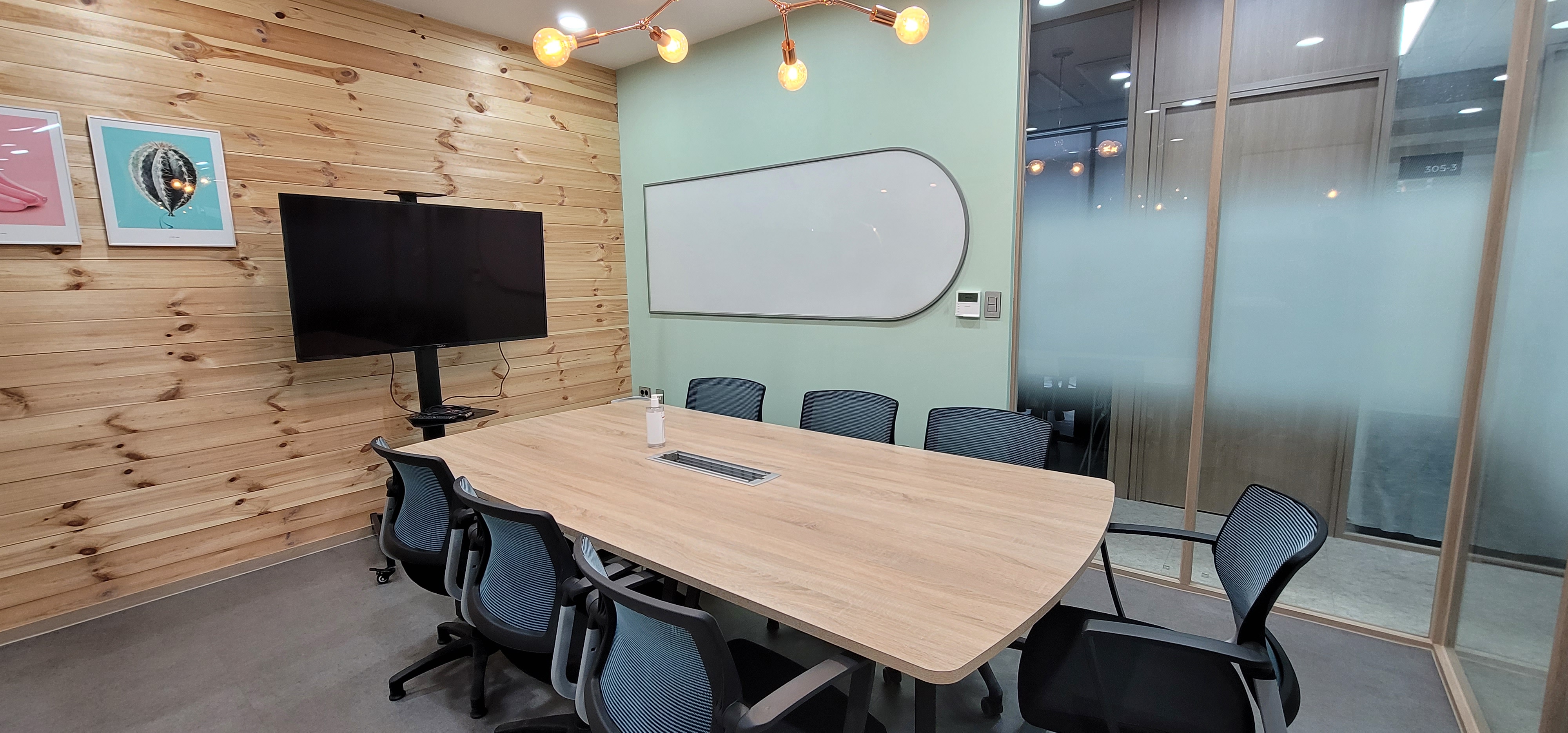 최대 7인까지 회의가 가능하고 55인치 TV가 준비되어 있어요.